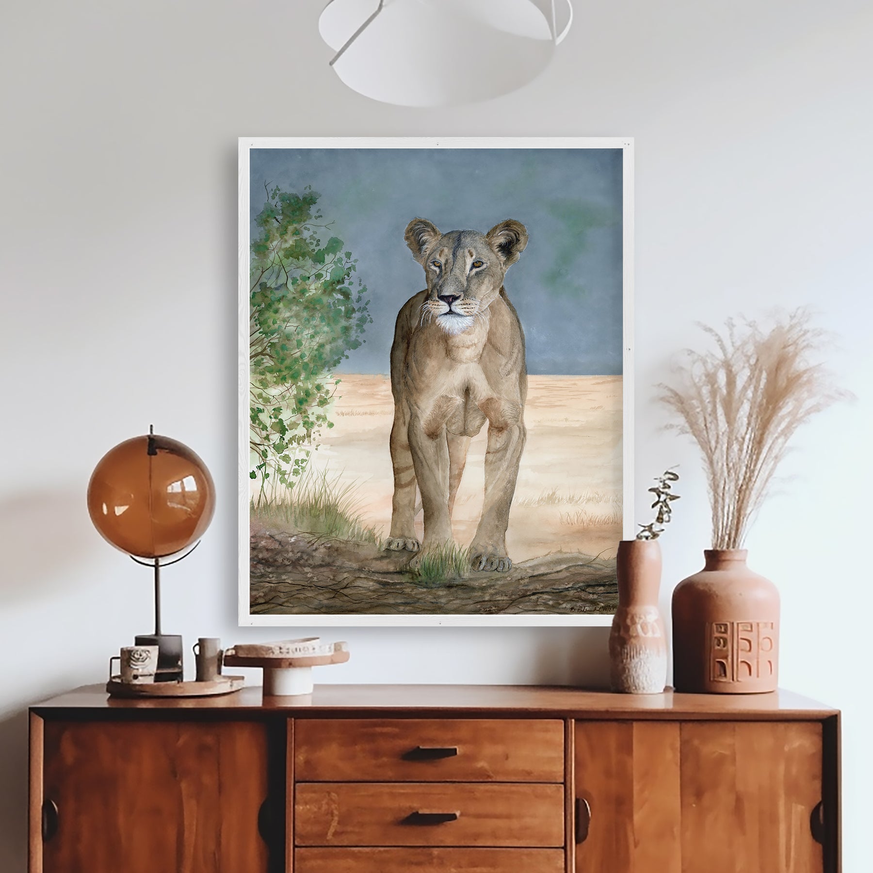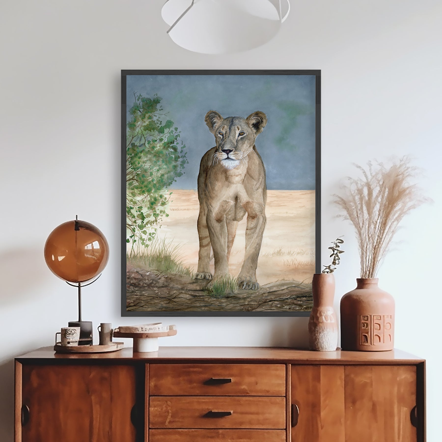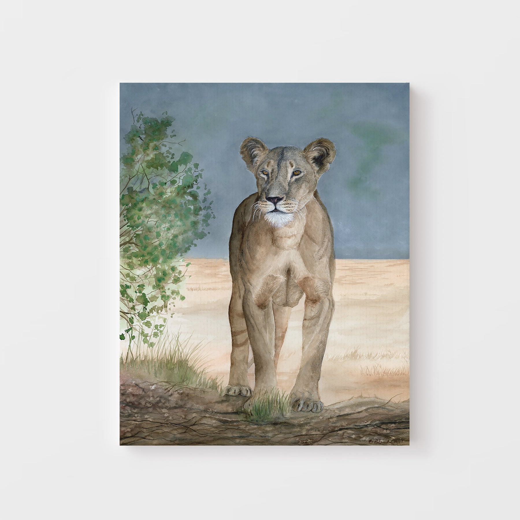 It is my true honor to have painted Nanai. And although the original was sold through an auction, my greatest hope is that my painting continues to raise money for Ewaso Lions through these reproductions - (20% of profits will be donated to Ewaso). Ewaso Lions are passionate about their work and they have bridged gaps and built strong bonds within their communities to save and protect lions, while also protecting herders interests.